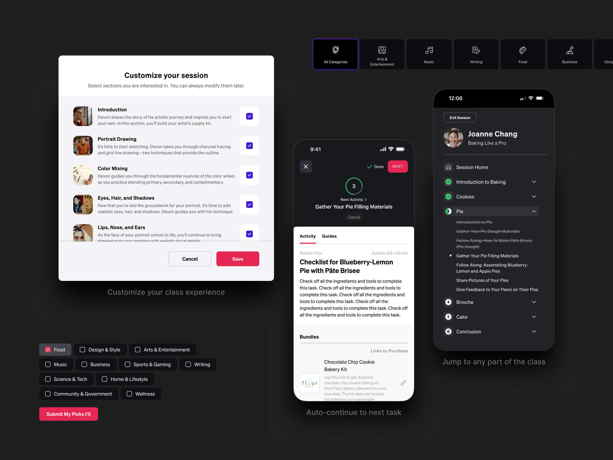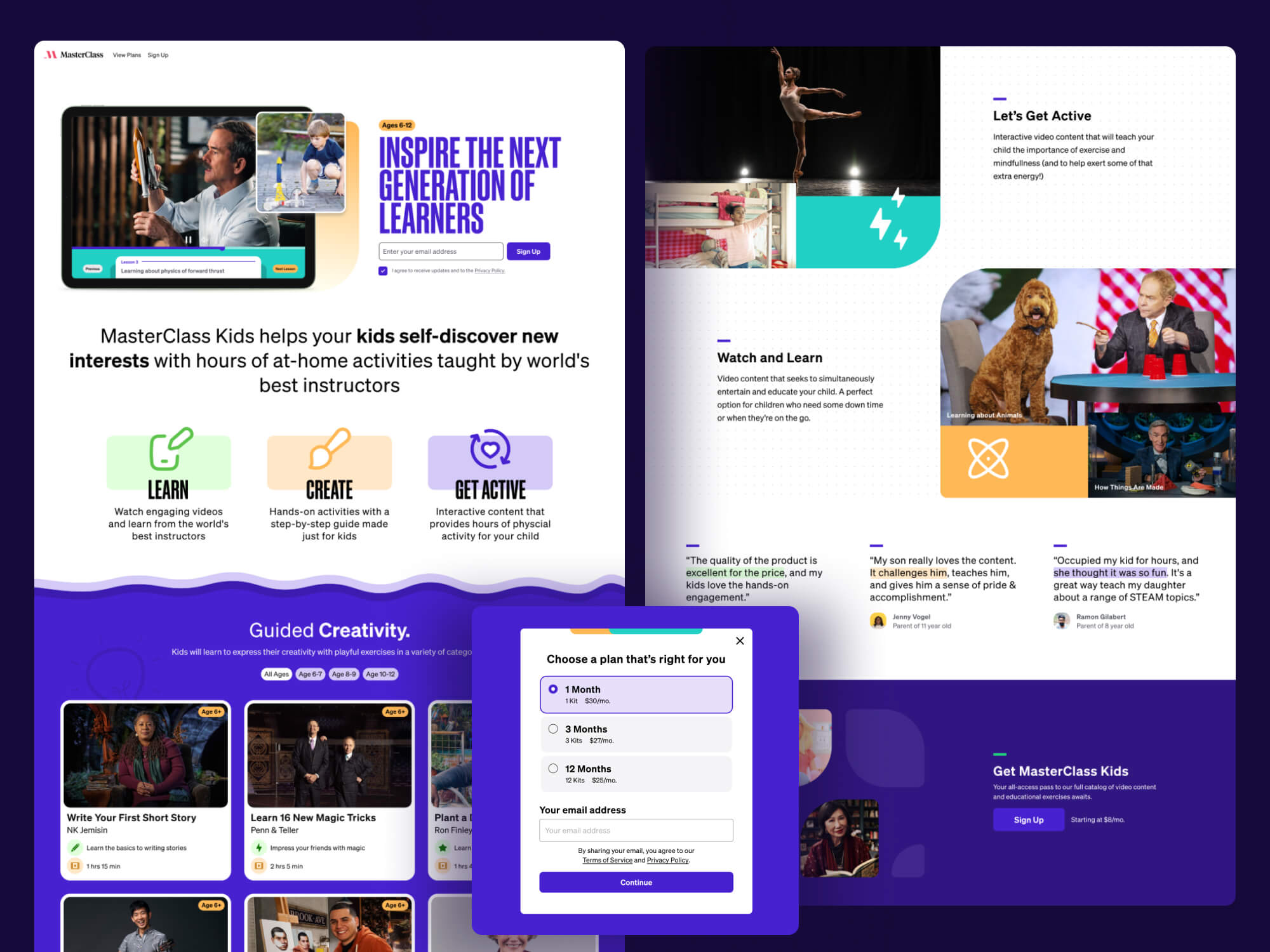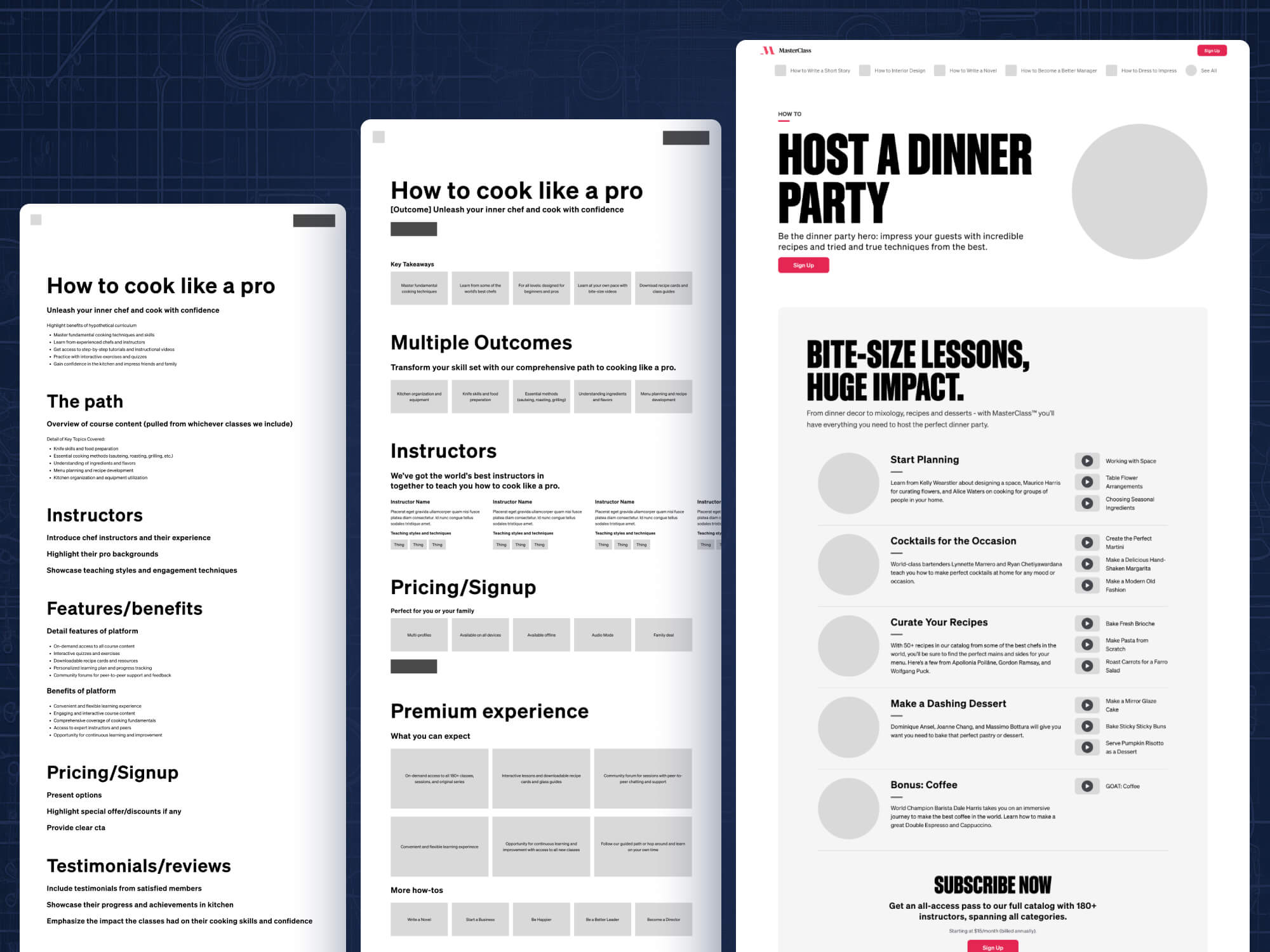When designing the quiz hero for Masterclass, I explored over 25 different design directions—ranging from layout variations to messaging and interaction patterns. This process was grounded in rapid prototyping and wireframing, allowing me to test a wide spectrum of ideas quickly before aligning with my PM on the strongest concept. It reflects my belief that great design emerges from expansive exploration and a willingness to challenge first instincts before refining toward clarity and impact.
