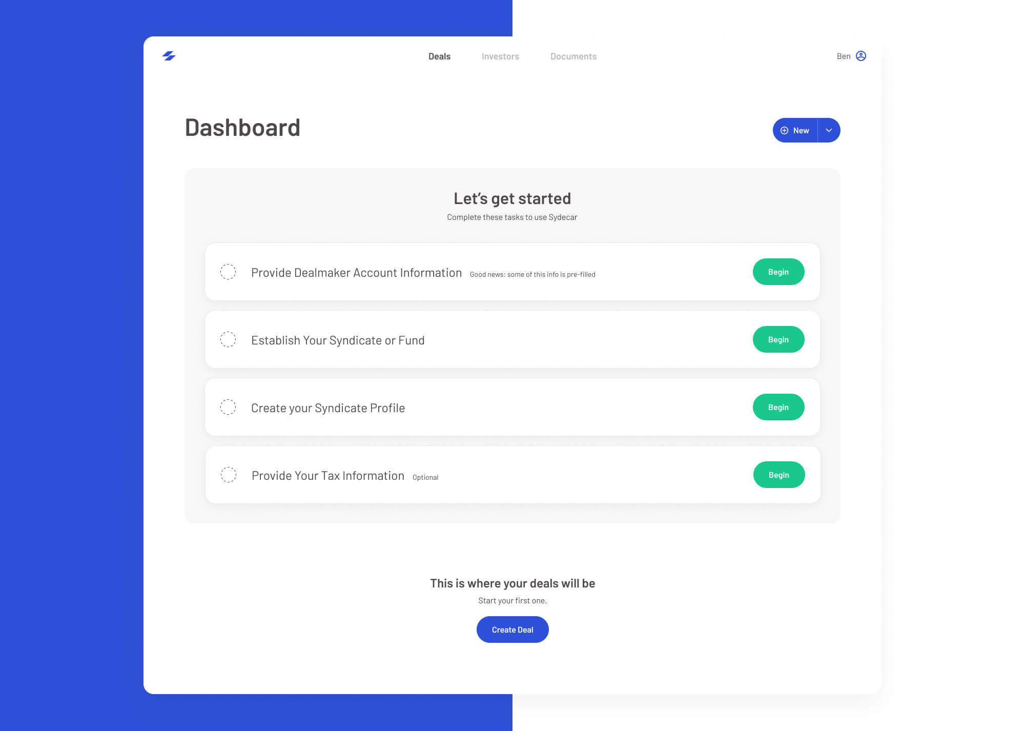 The opportunity in venture capital is greater than ever. But for aspiring investors, getting started can be intimidating, expensive, and time-consuming. By pioneering a standardized approach to private investing, Sydecar enables thousands of new investors to identify and back entrepreneurs who are changing the world.